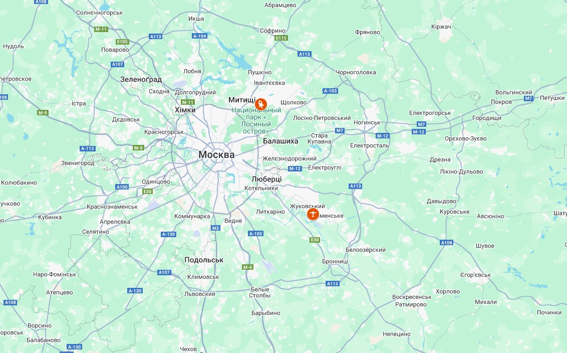 В сети можно отыскать возможные адреса военных предприятий под Москвой, по которым должны были бы ударить средства поражения ВСУ. АО "Корпорация "Тактическое ракетное оружие" расположено в городе Королев (ул. Ильича-ул. Орджоникидзе) к востоку от Москвы. Авиаремонтное предприятие "Жуковский" — между городами Раменское и Жуковское к юго-востоку от российской столицы.