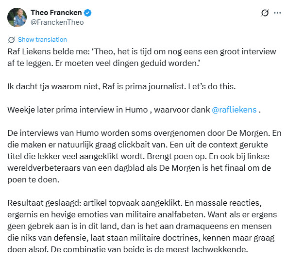 "Заголовок, вырванный из контекста, который получает кучу кликов. Это приносит деньги. И даже для левых благотворителей в такой газете, как De Morgen, все сводится к деньгам", — написал он.