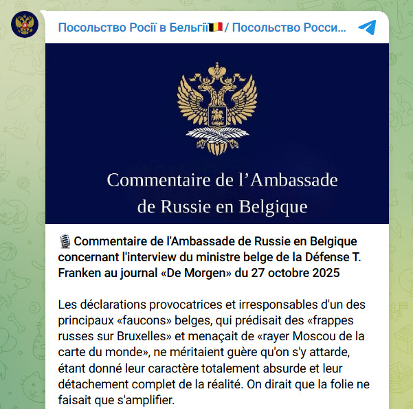 На заявления Франкена отреагировало посольство России в Бельгии.