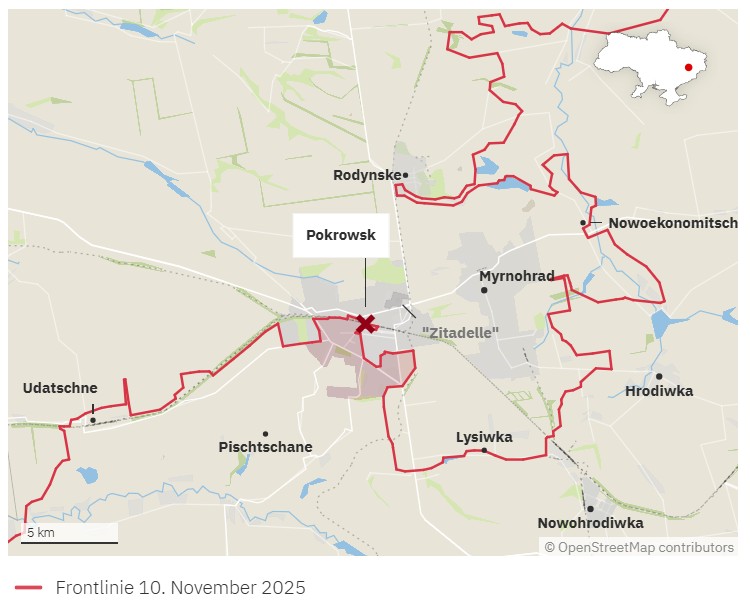 Вооруженные силы Российской Федерации пытаются со стороны Родинского атаковать дронами логистические пути на Мирноград и Покровск, рассказал офицер австрийской армии. Покровск почти полностью контролируется россиянами, а украинцы закрепились в районе застройки "Цитадель". По мнению офицера, оккупированную агломерацию ВС РФ используют для зимовки, а дальше будут угрожать еще двум городам на противоположных отрезках фронта.
