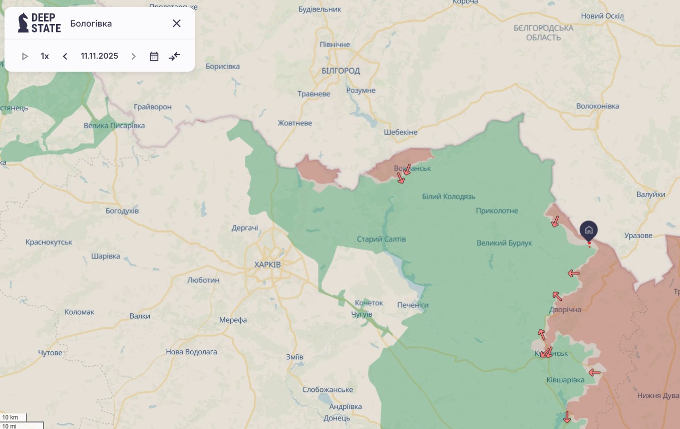 Наступление РФ - ситуация около Бологовки Харьковськоъ области 11 ноября