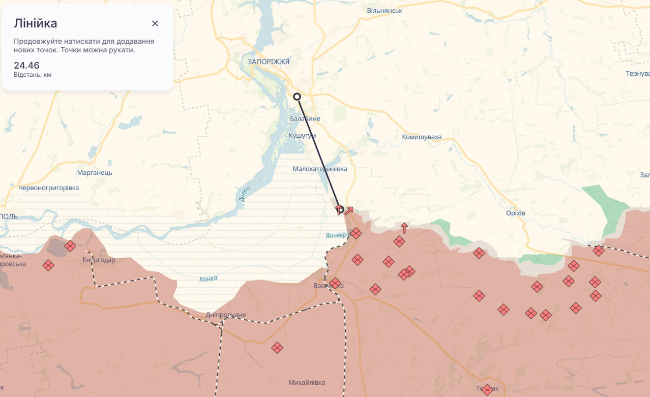 По данным аналитиков DeepState, за последние три месяца на Ореховском направлении враг имеет минимальное продвижение в сторону Орехова. Зато фиксируется продвижение оккупантов в сторону Запорожья — по состоянию на сейчас от территории, которую контролирует враг, до города Запорожье менее 25 км. В частности, оккупанты вплотную подошли к населенному пункту Степногорск, а также ведут наступательные действия в сторону Приморского.