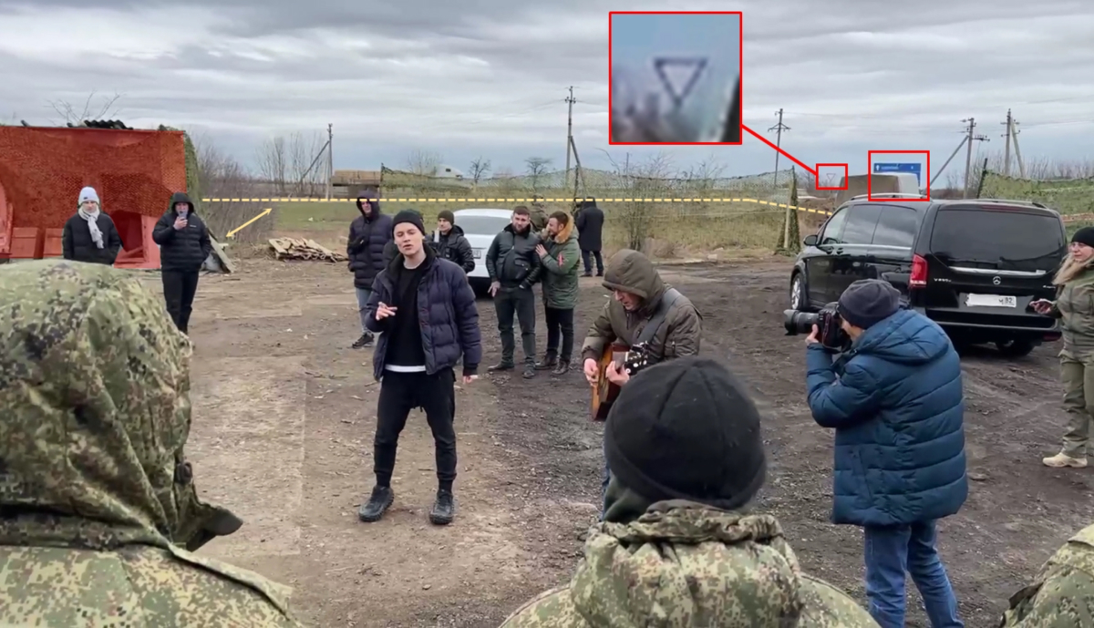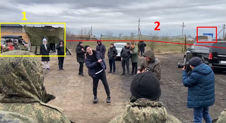 Среди зацепок, которые они отметили, – характерное деревянное здание с крышей, трансформатор у столба, маскировочная сетка, дорожные знаки, биотуалеты и автомобили УАЗ.