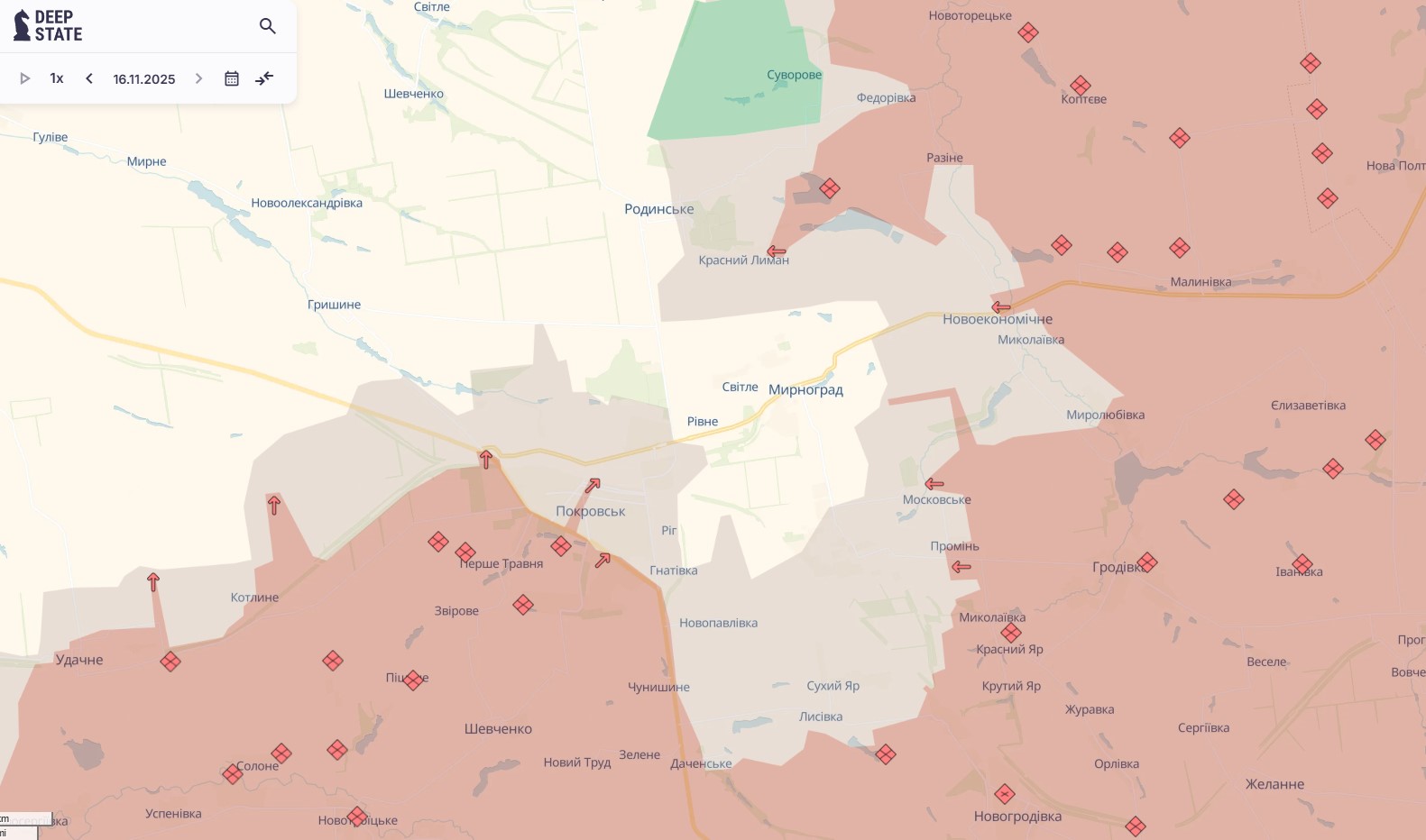 Покровское направление - Мирноград на карте 18 ноября