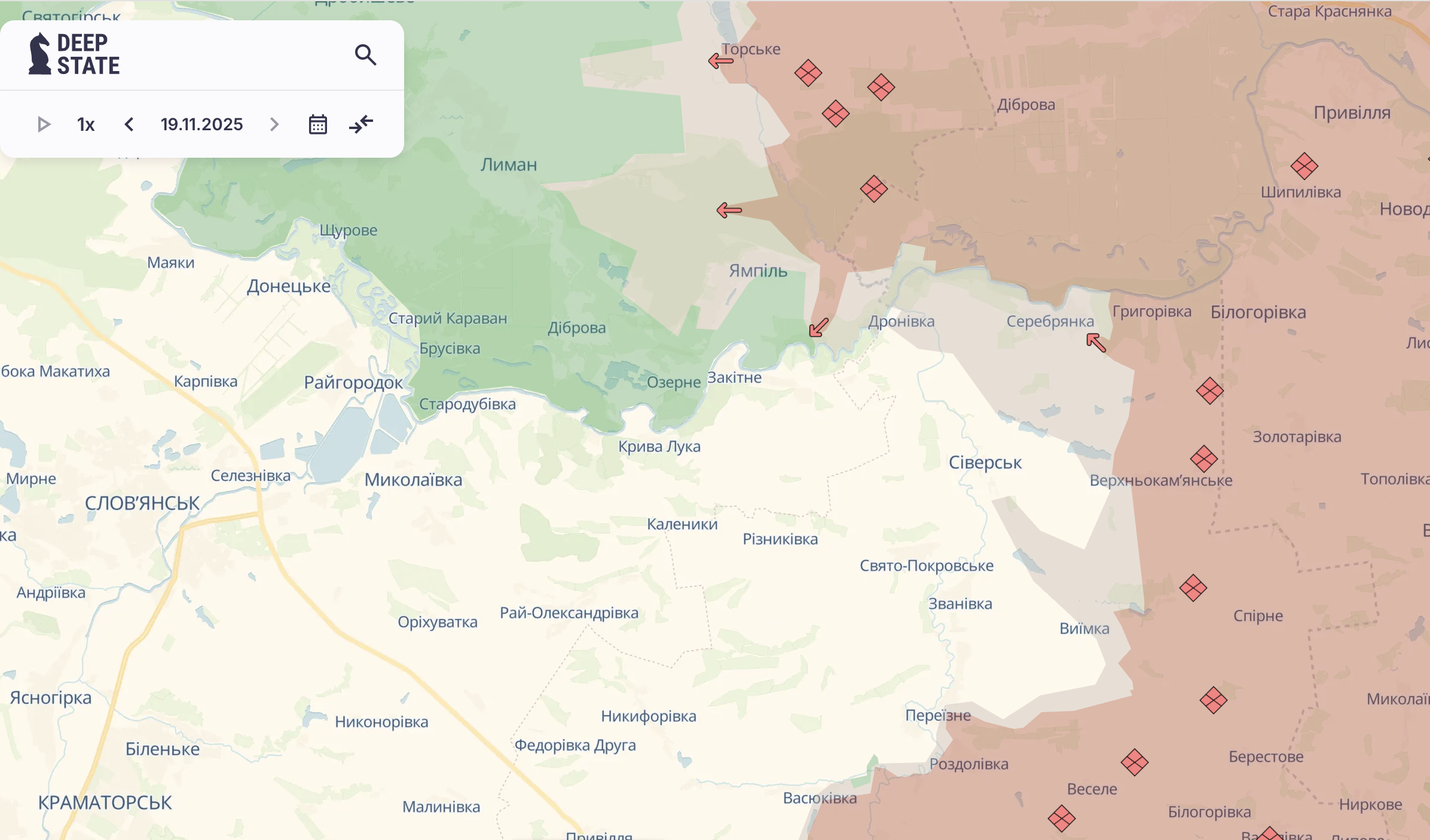 В то же время аналитический ресурс DeepState пока лишь подтвердил потерю Ивано-Дарьевки и не зафиксировал заход войск РФ в сам Северск, обозначив на карте этот участок "серой зоной". А глава Северской МВА Алексей Воробьев опроверг заявления о входе российских сил в город. По его словам, Северск остается под украинским контролем, а сообщения о закреплении российских подразделений в городской черте не соответствуют действительности.