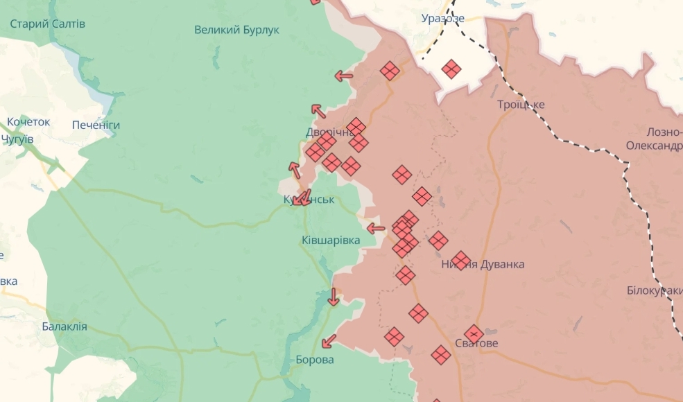 На картах DeepState Купянск отмечен как населенный пункт, где идут бои. О полном контроле речь не идет.