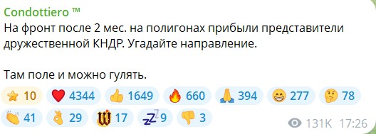 Сообщение о солдатах Северной Кореи на Запорожском направлении появилось в сети вечером 23 ноября. В российском паблике заверили, что северокорейцы два месяца готовились на полигонах РФ, а теперь приедут в место, описанное словами "там поле и можно гулять".