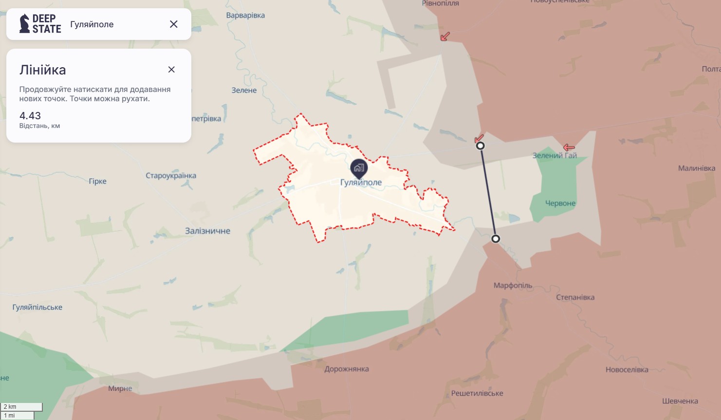 Фокус писал о боях под Гуляйполем на основе информации украинского командования, военных и аналитиков проекта DeepState. 21 ноября аналитики обновили карту боевых действий и показали, что россияне оккупировали село Веселое и продвинулись в сторону Затишья. Расстояние от ближайших российских позиций и украинских — 3-4 км на северо-востоке (от Затишья) и 1,5 км на юго-востоке (рядом с Марфополем).