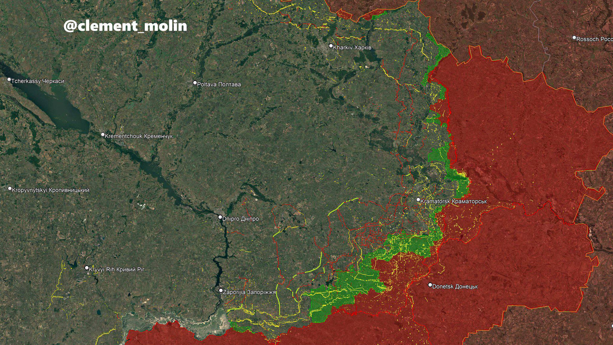 При создании оборонительных линий в Украине теперь ставка делается не на крупные укрепрайоны, которые легко поражаются авиацией и артиллерией, а на протяженные линии препятствий — рвы, колючую проволоку и "зубы дракона". Об этом пишет французский OSINT-аналитик Клемент Молин.