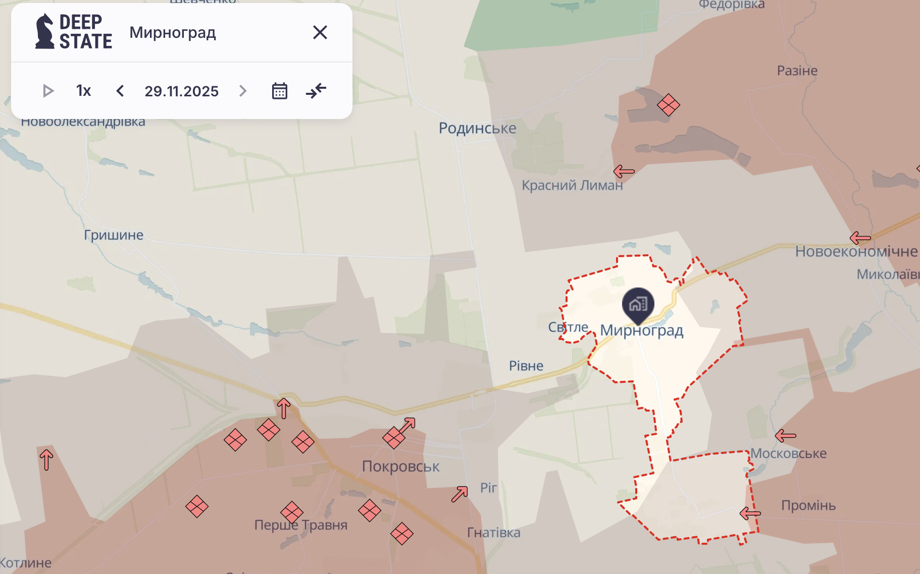Данные о зачистке отображены на карте боевых действий. Одновременно портал зафиксировал продвижение российских подразделений в районе Мирнограда Донецкой области.