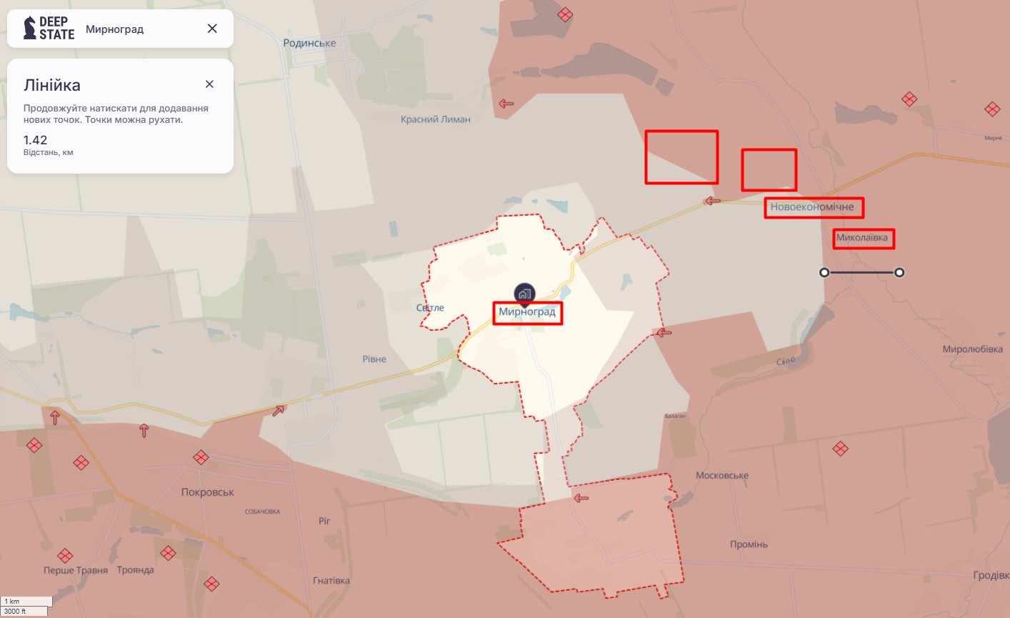 Согласно отчету Генштаба ВСУ по состоянию на утро 12 декабря на Покровском направлении, к которому относят Мирноград и Добропольский выступ, состоялось 49 штурмов ВС РФ — больше, чем на других участках. На втором месте — Александровское направление (26 атак), указано в отчете.