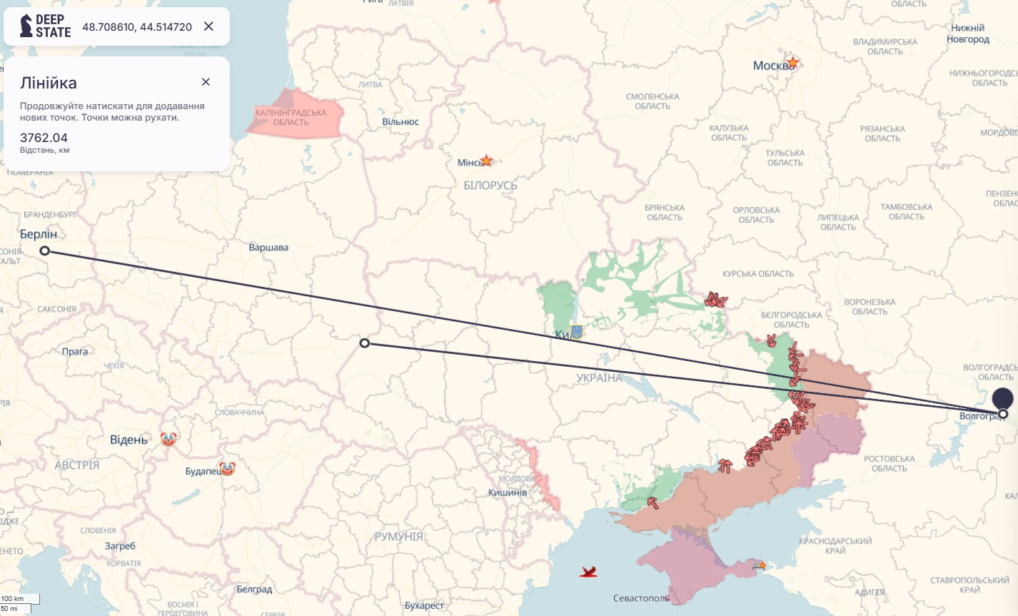 Аналитики сравнили наступление РФ с боевыми действиями Второй мировой войны, когда Вермахт направлялся в сторону Москвы и шел через Беларусь и Украину. В течение 44 месяцев боев нацистская армия прошла от Волыни до Сталинграда, развернулась и откатилась в Берлин. Ориентировочное расстояние, которое преодолели нацисты в течение этого времени, около 2500 км (до Сталинграда и обратно).
