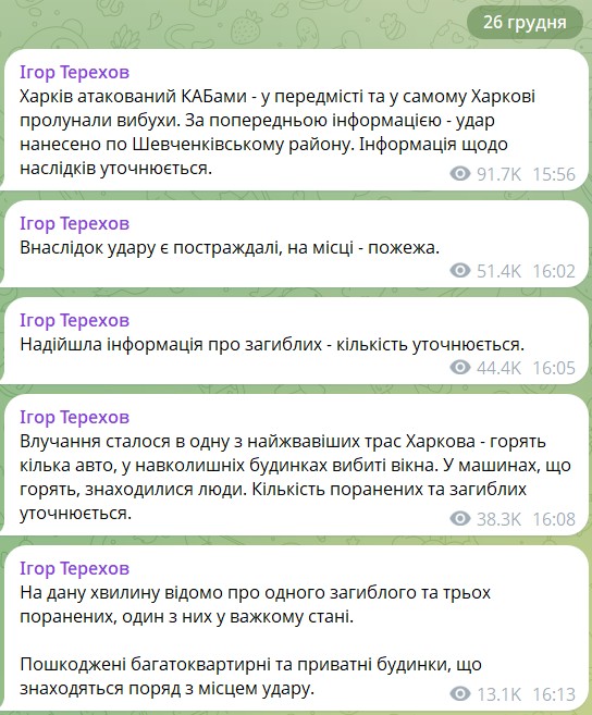 В Харькове ВС РФ ударили КАБом по трассе: есть погибшие, в машинах остаются люди, — Терехов