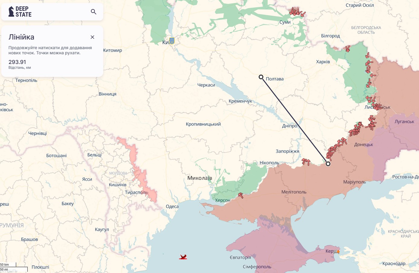 Стерненко не уточнил, когда именно произошла атака на вертолет в Полтавской области и на самолет в Николаевской, поэтому не ясно, произошло ли это тогда же, когда россияне били по кораблю. Ориентировочное расстояние от Полтавы до линии фронта — около 300 км, а от российско-украинской границы на востоке — около 160 км. Расстояние от Николаева до линии фронта по Днепру и до Кинбурнской косы — около 70–80 км, до оккупированного Крыма — около 300 км.