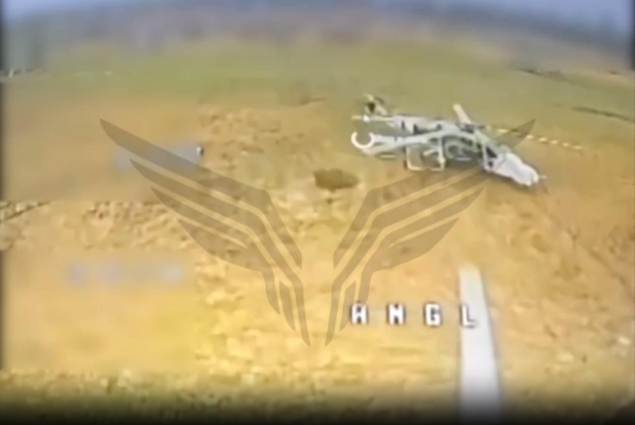 Утром 19 декабря волонтер опубликовал три фото — скриншоты из видео, опубликованных в пабликах российских военных. На первом фото — изображение вертолета за мгновение до того, как по нему попал российский дрон. Видно, что вертолет стоит под открытым небом, вокруг нет защитных сооружений, ангара, также не заметно военнослужащих, а удар состоялся днем.