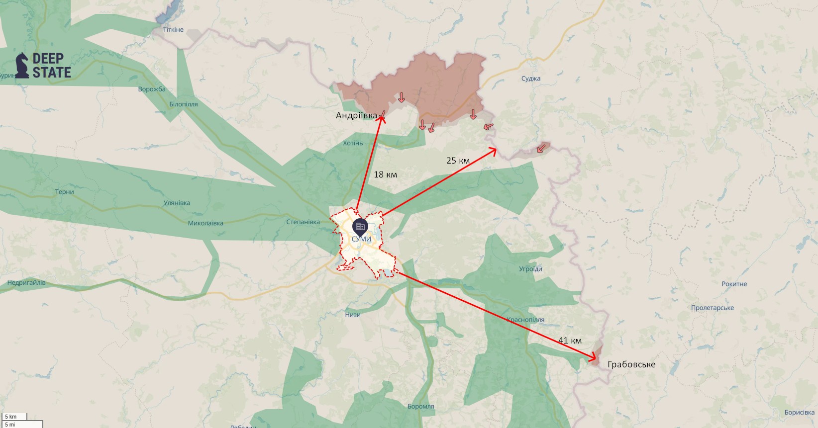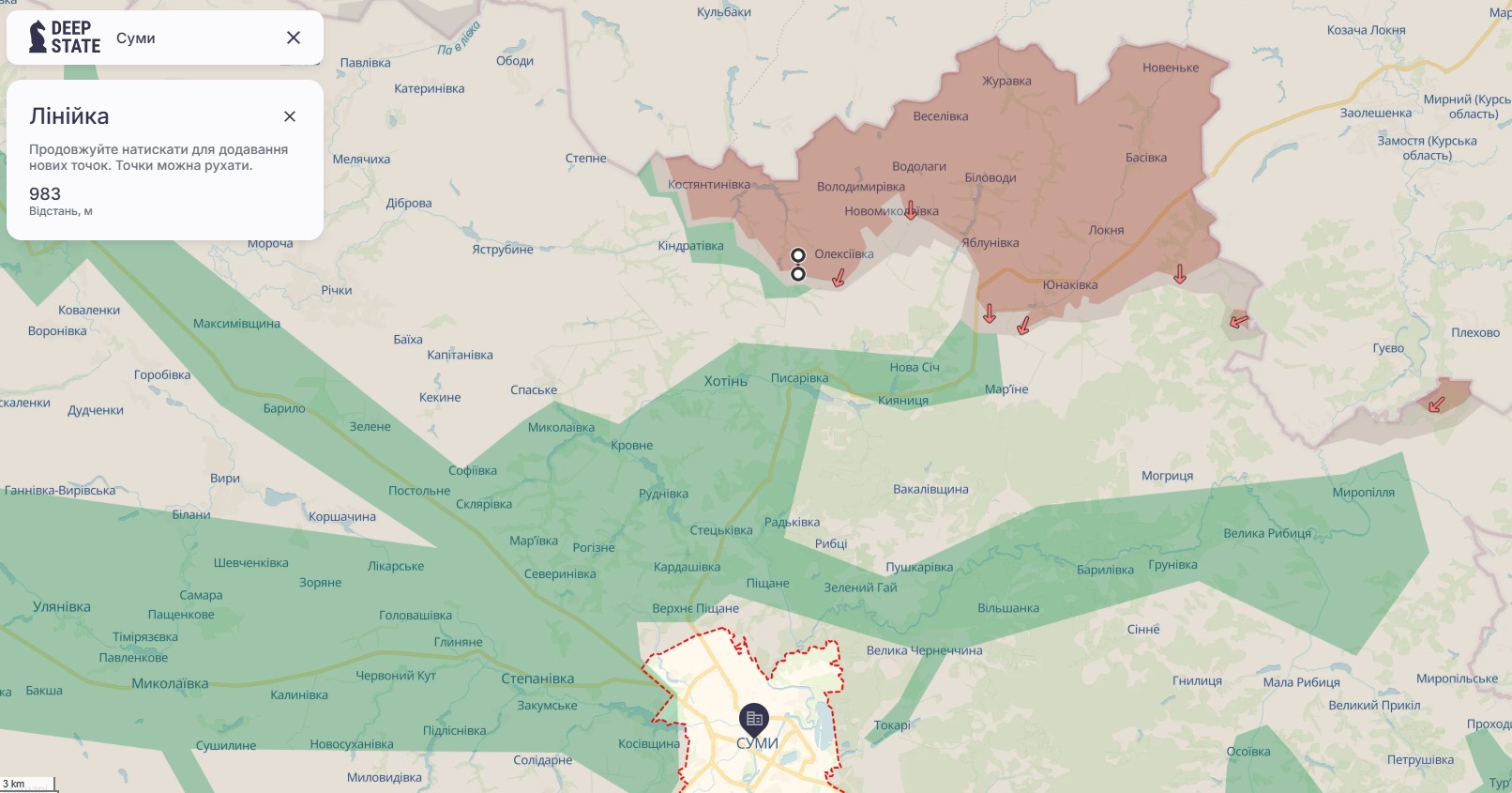 Наступление РФ — какое расстояние от Сум до фронта и границы