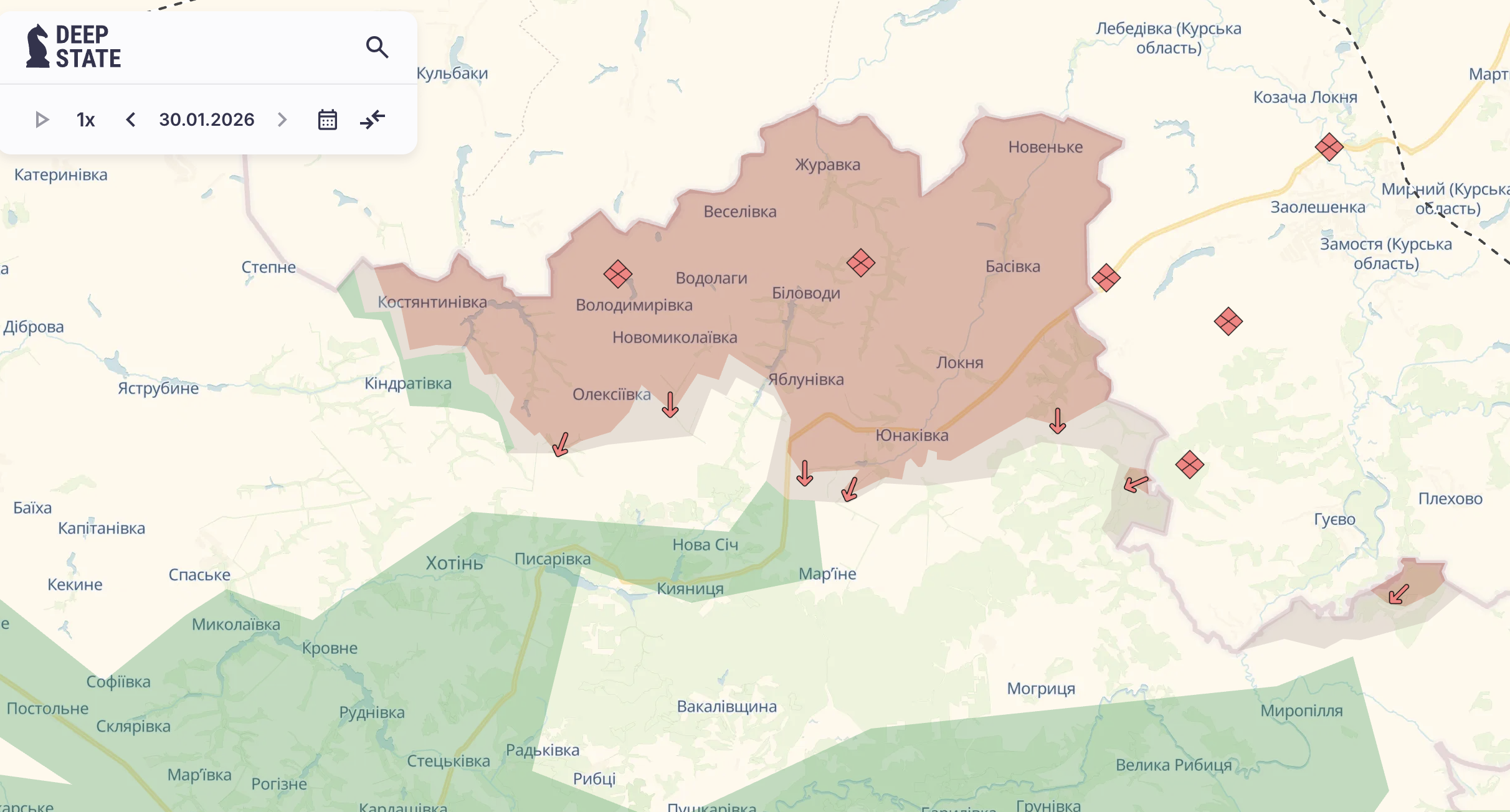 Согласно картографическим данным аналитического ресурса DeepState, с начала года на Сумском направлении активного продвижения войск РФ практически не было. Активность противника фиксировалась 7 января в районе населенного пункта Алекссевка, где подразделения ВС РФ пытались наступать в сторону Писаревки.
