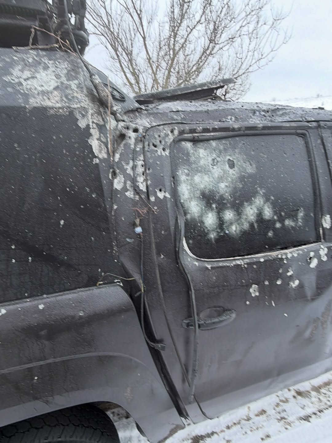 Он опубликовал фото поврежденного авто для эвакуации гражданских с изрешеченными дверями и свое селфи с кровью от ран на лице.
