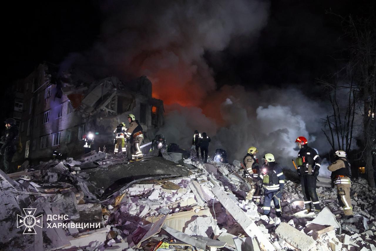 В ночь на 7 марта ВС РФ прямым попаданием разрушили пятиэтажный дом в Киевском районе Харькова, в результате чего был полностью уничтожен подъезд здания и вспыхнул масштабный пожар.