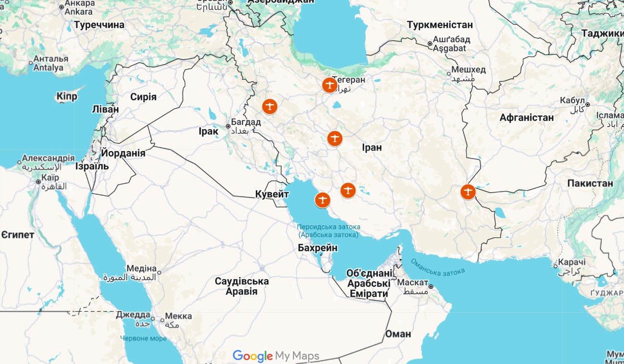 Война в Иране — точки ударов по авиабазам КСИР 28 февраля-6 марта