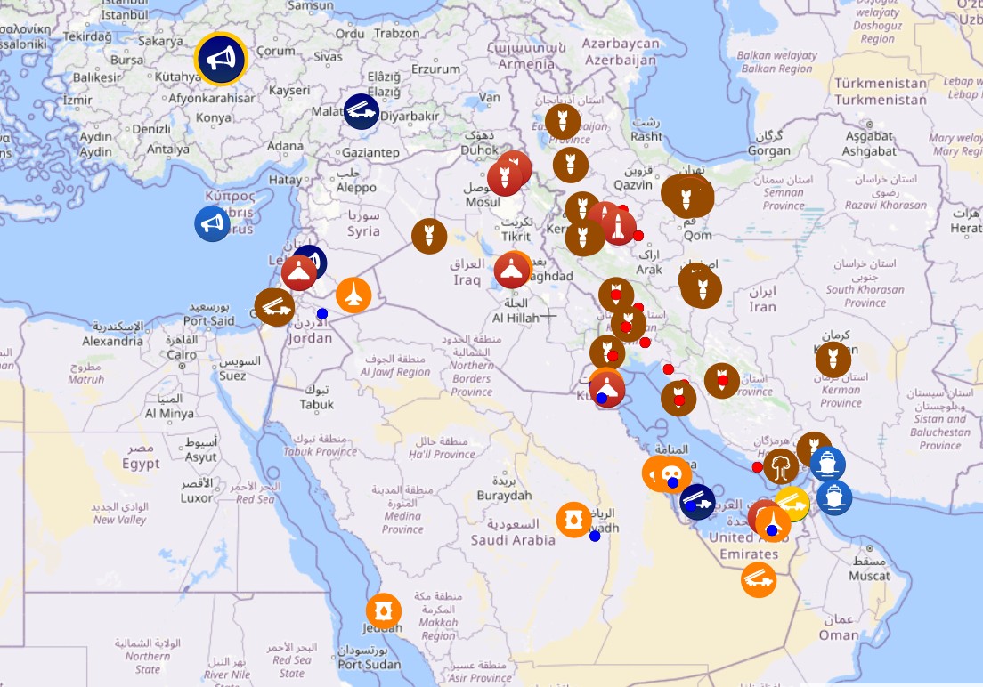 На карте проекта liveuamap указаны точки, до которых достал Иран или его сторонники. Самый дальний удар — по базе на Кипре (1000 км от Ирана, но 300 км от прокси Хезболлы в Ливане). Кроме того, критическим для мировой экономики является закрытие Ормузского пролива, через который перестала поступать нефть. Чтобы справиться с атаками Ирана ряд стран Европы и Азии отреагировали: часть — прислали войска, часть — перевели ПВО в боевую готовность.