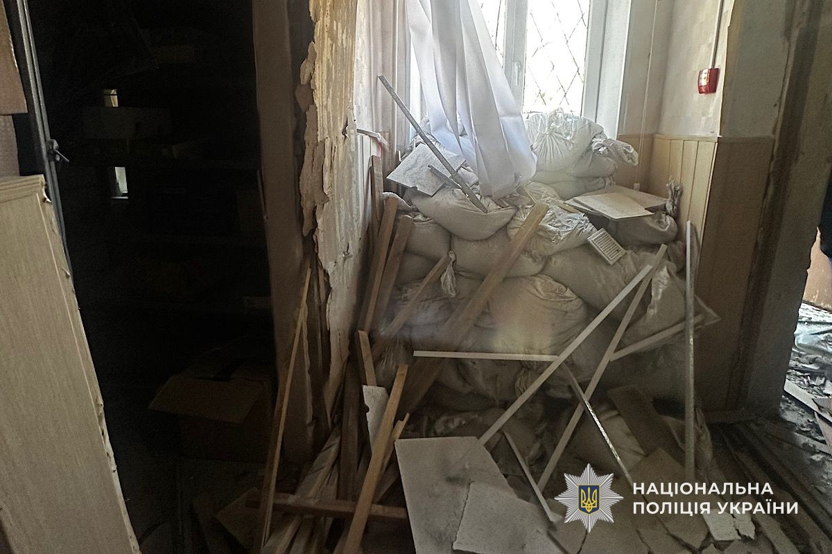 "Из-за вражеских атак повреждено административное здание полиции, имущество внутри и несколько автомобилей. Две служебные машины полиции полностью уничтожены. Также поврежден автомобиль спасателей, которые прибыли на вызов для эвакуации пострадавших", — рассказали правоохранители.