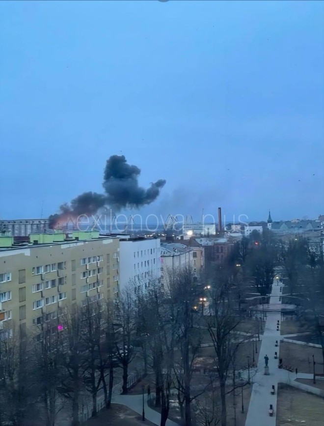 Фото дыма над портом Выборга 25 марта