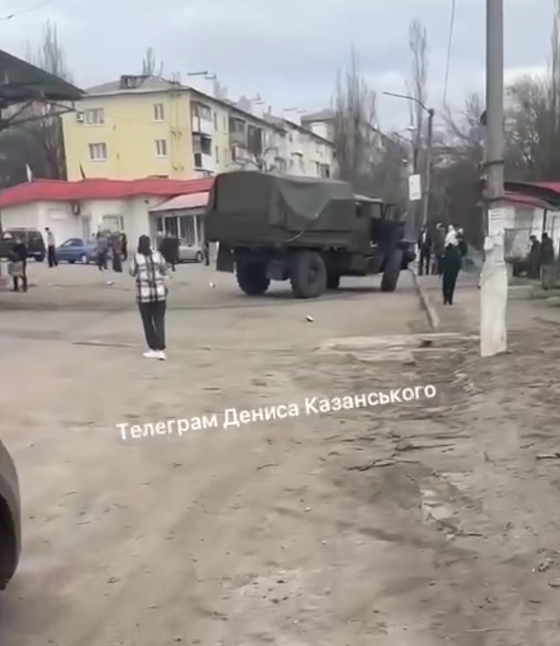Военный автомобиль "Урал", который использует армия РФ для перевозок, въехал на станцию автовокзала, где в это время находились гражданские люди. Об этом сообщил журналист Денис Казанский.
