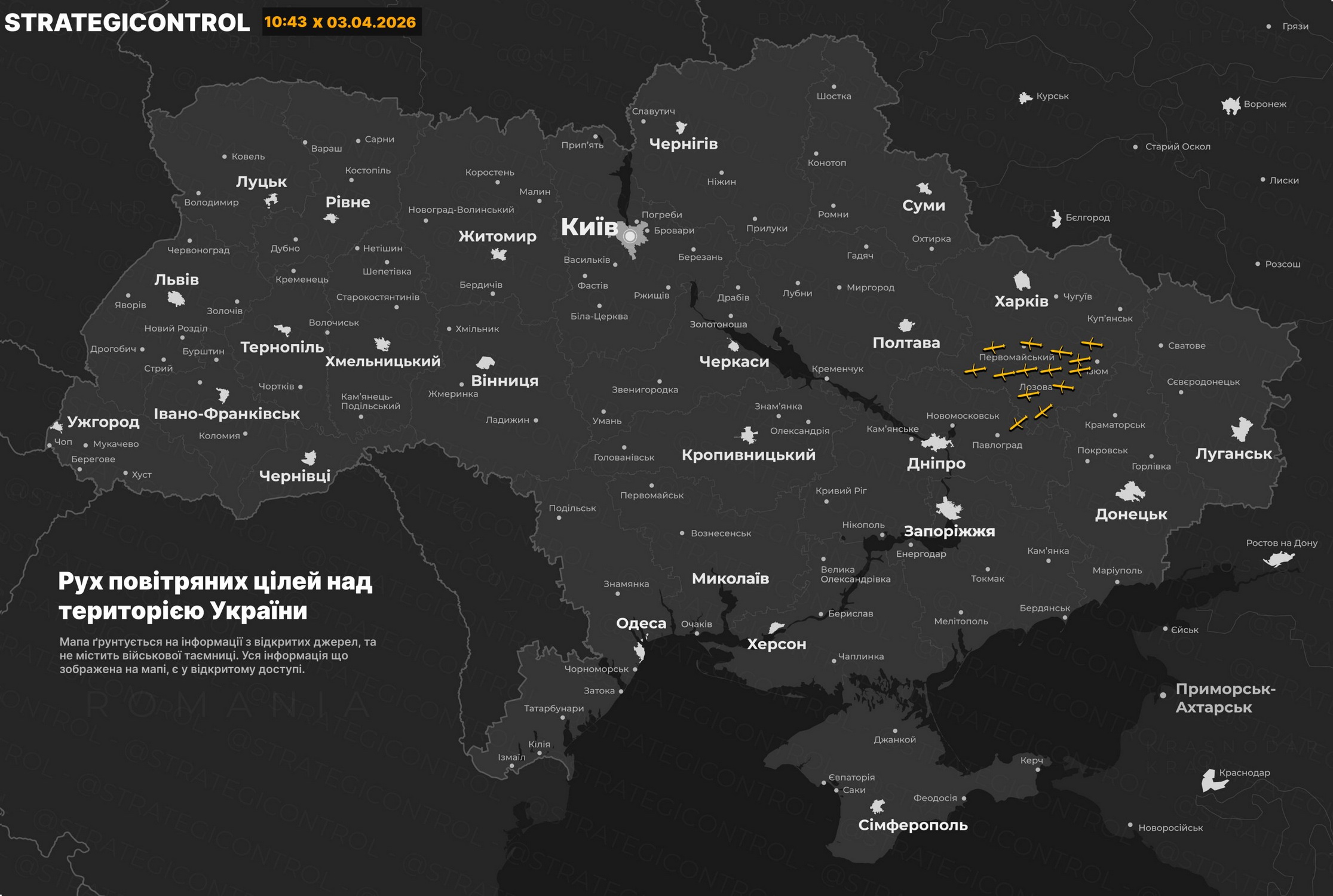 Обстрел Украины — траектория движения "Шахедов" ВС РФ 3 апреля