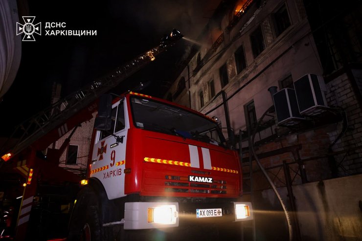Кроме этого, по данным ГСЧС, российские войска атаковали город БПЛА. Так, в Основянском районе дрон попал в четырехэтажное нежилое здание, и это вызвало пожар на площади около 320 квадратных метров. Предварительно, пострадал мужчина.
