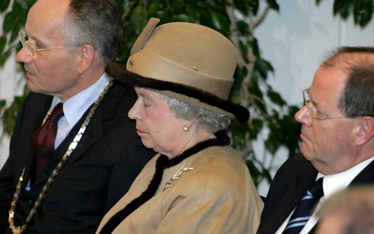 Елизавета Вторая. Ее Величество уснула во время мероприятия в университетском госпитале Дюссельдорфа. Впрочем, такие мероприятия, как правило, действительно скучны. Но даже заснув, королева не потеряла своего царственного величия и осанки.
