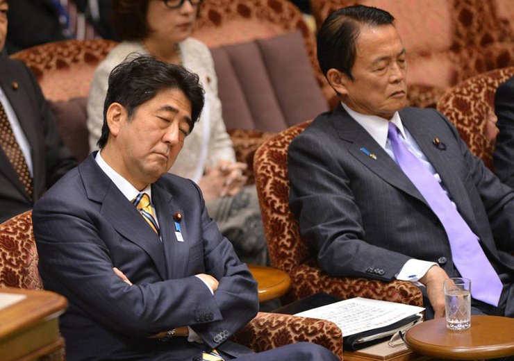 Синдзо Абе. Он уснул на заседании бюджетного комитета. Видимо, японский бюджетный процесс по сравнению с нашим действительно малоинтересен, поскольку компанию премьер-министру Японии составил его подчиненный министр финансов Таро Асо.