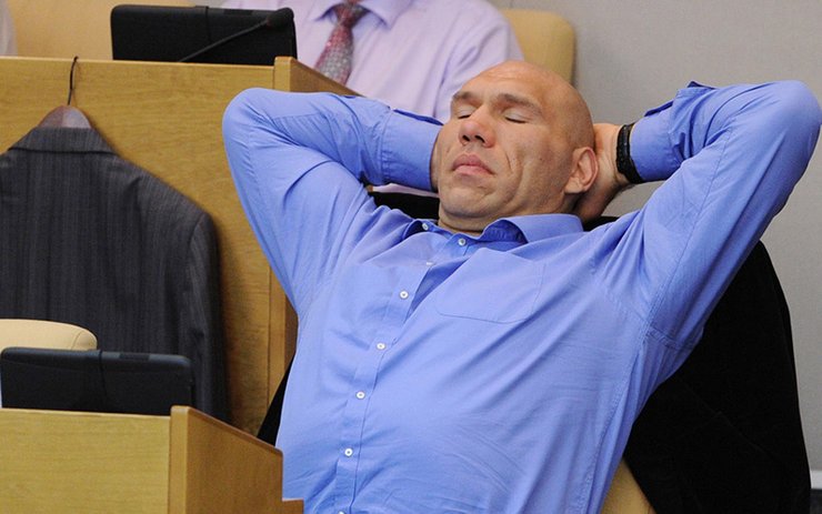 Николай Валуев. Депутат Госдумы о Единой России. Собственно в Думе он и уснул. Видимо, рассматриваемые вопросы не касались физической культуры и спорта, которые Николай Сергеевич курирует в законодательном органе.