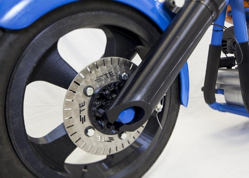 В мотоцикле используются традиционный электромотор, приводной ремень, некоторые болты, провода и электрокомплектующие. Однако остальные части, включая колесные подшипники, получены при помощи 3D-печати.