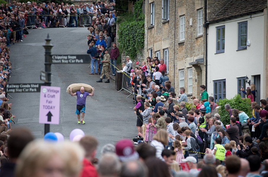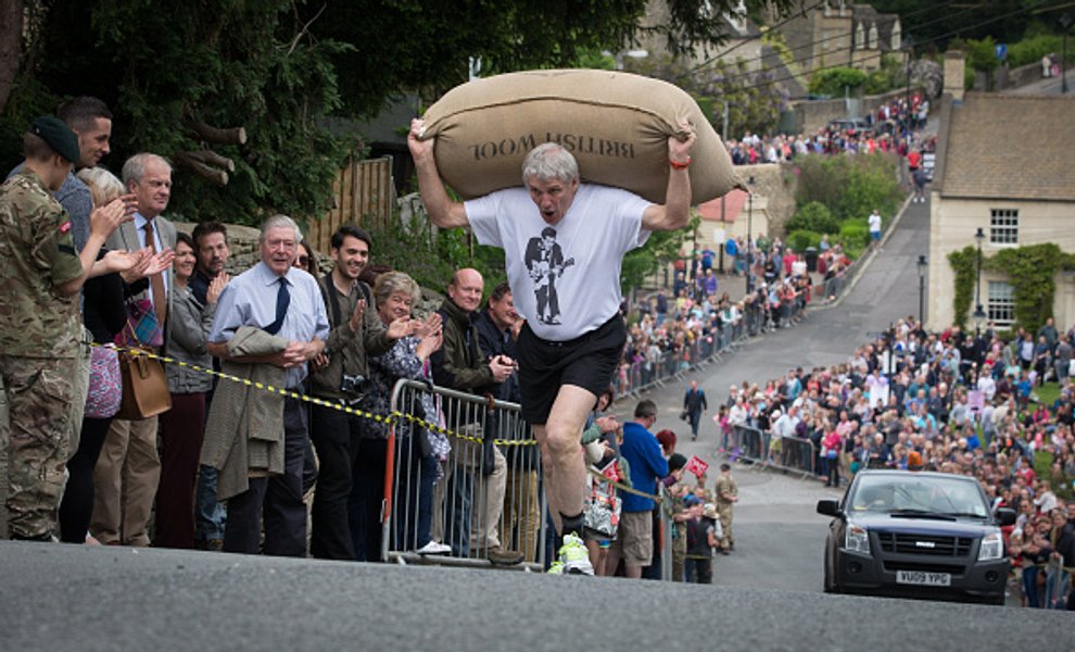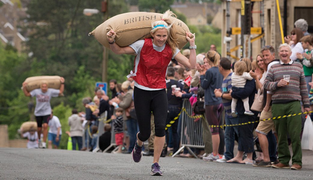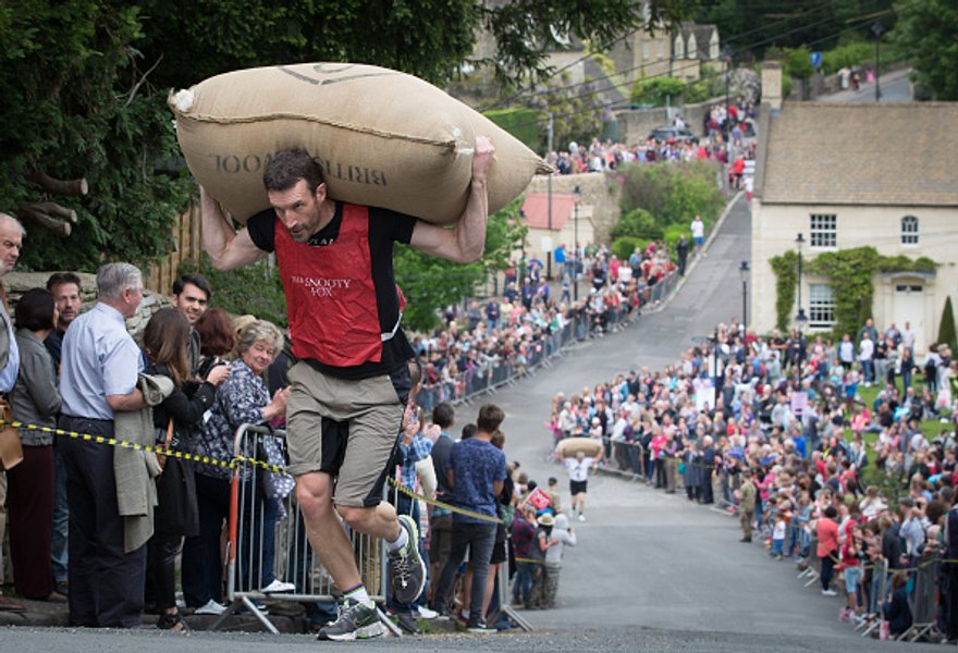 В главной эстафете команды из четырех человек бегают вверх и вниз по склону холма Гамстул-Хилл между двумя пабами Crown и Royal Oak, стремясь побить мировой рекорд (3 минуты 27,34 секунды). В индивидуальных забегах мужчины несут мешок с шерстью весом 27 кг, а женщины - 15 кг.