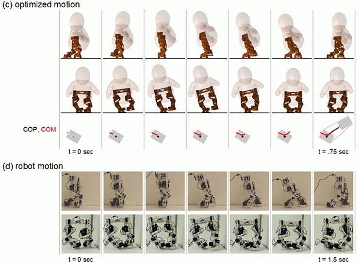 Оказалось, что систему можно упростить без ущерба походке. Авторы уменьшили количество степеней свободы двух суставов и напечатали на 3D-принтере связки. У робота не было возможности повторять именно движения суставов анимационного персонажа, но компьютерный анализ позволил вместо этого повторять траекторию движения конечностей.