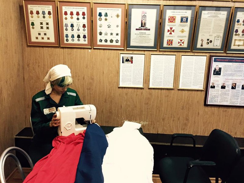 Экс-участница Pussy Riot на Болотной площади в робе шила флаг РФ