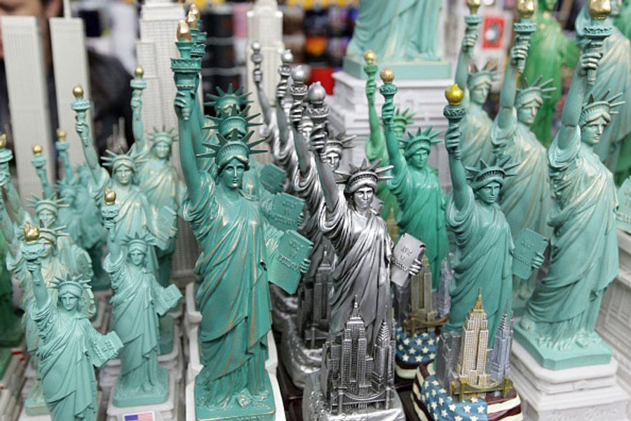 Статуя Свободы является символом США. Она находится на острове Свободы примерно в трех километрах от южной оконечности Манхэттена, одного из районов Нью-Йорка. Богиня Свободы держит факел в правой руке и подобие книги (таблички) в левой. Надпись на табличке гласит: "JULY IV MDCCLXXVI" ("4 июля 1776") – дата подписания Декларации Независимости. Одна нога статуи опирается на разбитые оковы. Семь зубцов в ее короне символизируют семь морей или семь континентов. Высота от земли до кончика факела – 93 метра, высота самой статуи, от верха пьедестала до факела – 46 метров. Статуя была построена из тонких листов меди, отчеканенных в деревянных формах. Сформированные листы потом были установлены на стальной каркас.