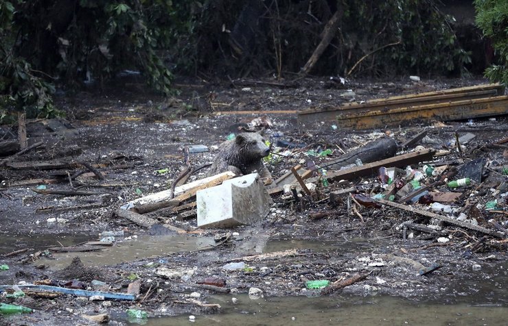 Вывернутые с корнем деревья, торчащие носы автомобилей, разрушенные дороги, смытые дома, транспортный коллапс, уничтоженный зоопарк, питомник для собак, медведь на кондиционере, тигр у метро, волки на территории детской инфекционной больницы, пантера на улице у подъезда жилого дома – разгуливающие по городу испуганные звери, потом убитые (транквилизаторов хватило лишь на одного спасенного бегемота, героя мировых хроник). Грязь по щиколотку, сход селевых потоков не прекращается. И – жар-а-а-а.