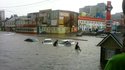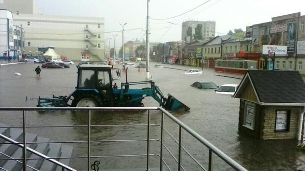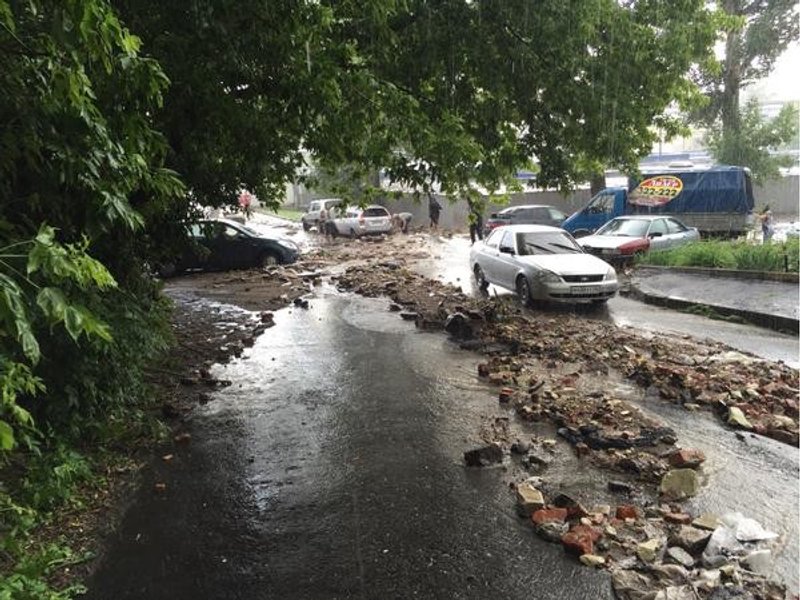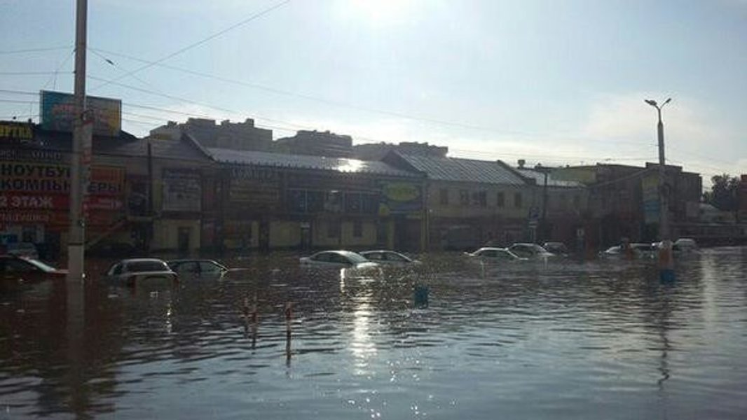 Из-за сильного ливня в субботу случился потоп в центре Курска, сообщает BBC. По словам очевидцев, канализация не справлялась с потоком воды, собиравшейся на улицах в низинных районах города.