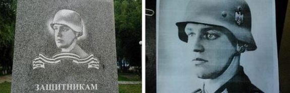 Вот только не совсем понятно, защитникам какого именно отечества этот памятник, поскольку на нем изображен Вернер Гольдберг – военнослужащий вермахта, частично еврейского происхождения, послуживший фотомоделью в нацистской пропаганде как "идеальный германский солдат".