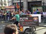 Персонаж российского президента проехал по Лондону, "стреляя" в прохожих из надувного автомата под современную обработку "Распутина"