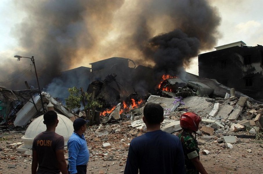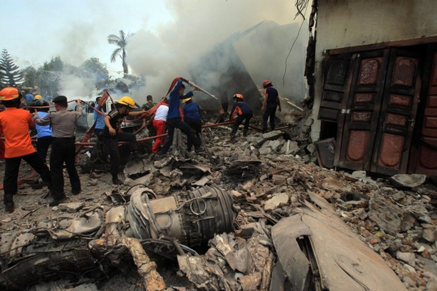 Военно-транспортный самолет Hercules C-130 ВВС Индонезии сегодня потерпел крушение над жилой зоной города Медан, взорвавшись над зданием отеля, сообщает "Лига". Число погибших достигло 30 человек. На борту находились 12 членов экипажа и пассажиры, количество которых не уточняется.