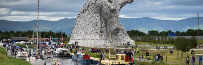 Скульптуры высотой 30 метров и весом 300 тонн установлены над каналом Форт-Клайд. Композиция получила название "Келпи" в честь водяных духов из шотландской мифологии.