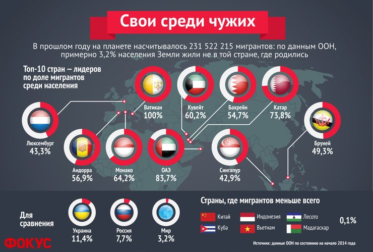 ТОП-10 стран-лидеров по доле мигрантов среди населения