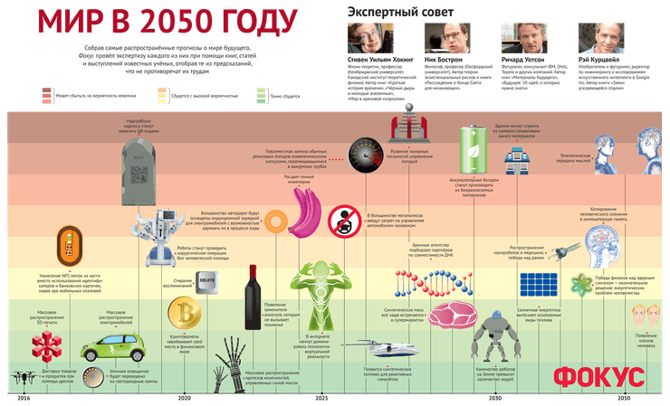 Собрав прогнозы о мире будущего, Фокус провел экспертизу каждого из них, определив степень вероятности каждого