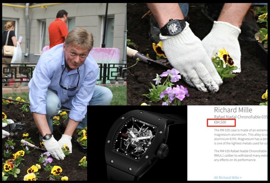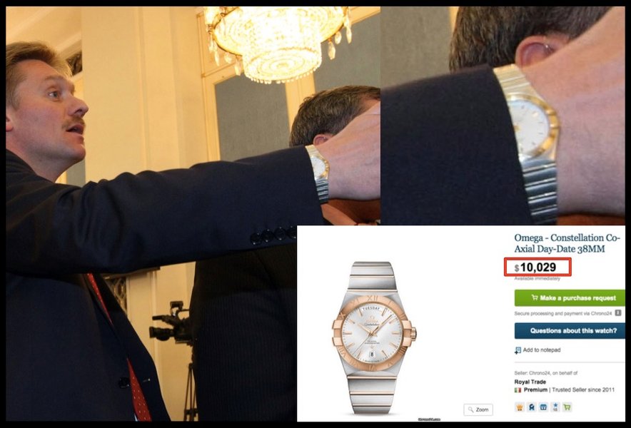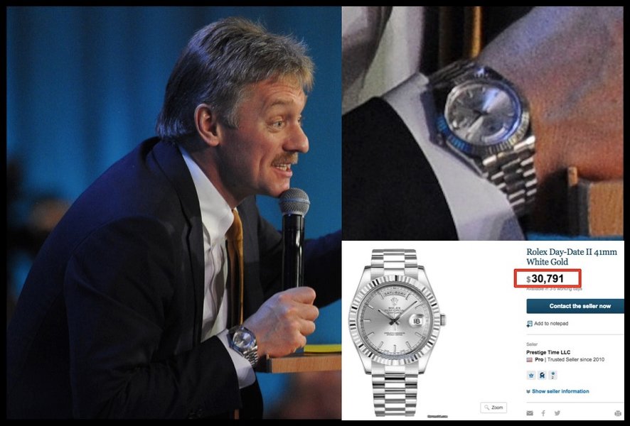 Российский оппозиционер Алексей Навальный опубликовал фотографии четырех пар часов пресс-секретаря президента РФ Дмитрий Песков, совокупной стоимостью более $150 тыс.