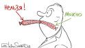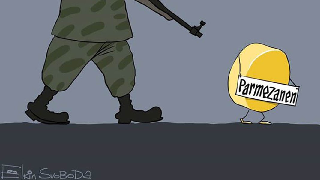 Известный художник Сергей Елкин, заработавший славу своими карикатурами на политических деятелей, изобразил главную проблему России на сегодняшний день – уничтожение продуктов питания, которые попали под санкции