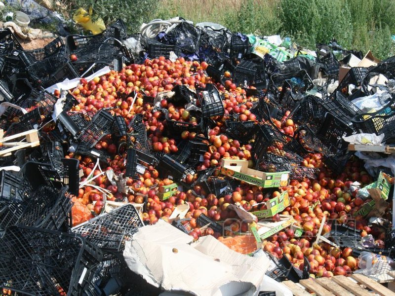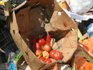 Полигон завален персиками и помидорами. Помидоры уничтожены полностью, а персики пригодны к употреблению. Селяне мешками тащат с полигона фрукты.