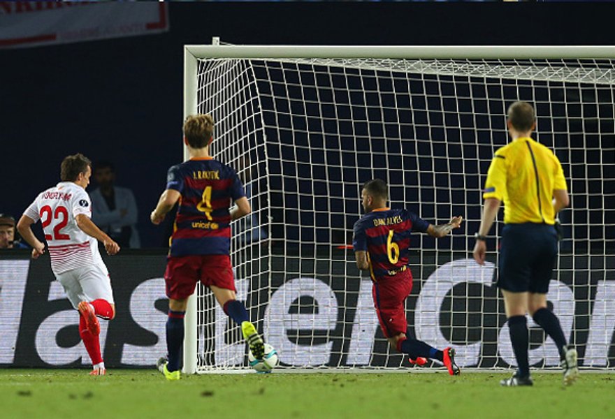В напряженном поединке за Суперкубок УЕФА Барселона в дополнительное время обыграла Севилью со счетом 5:4. В составе Севильи дебютировал Евгений Коноплянка, который, выйдя на замену во втором тайме, сумел сравнять счет и перевести игру в овертайм.